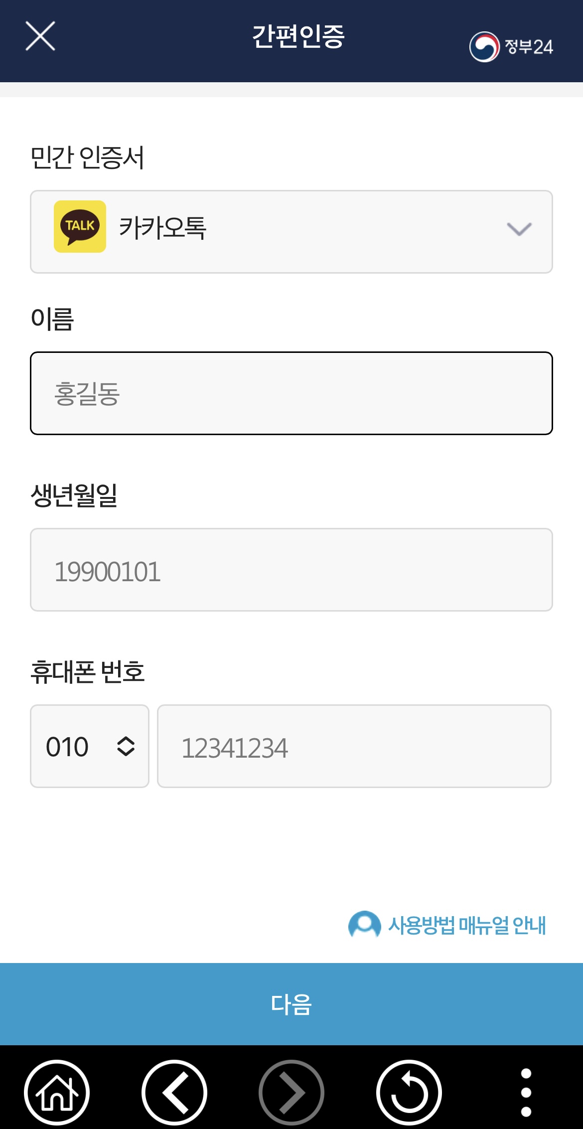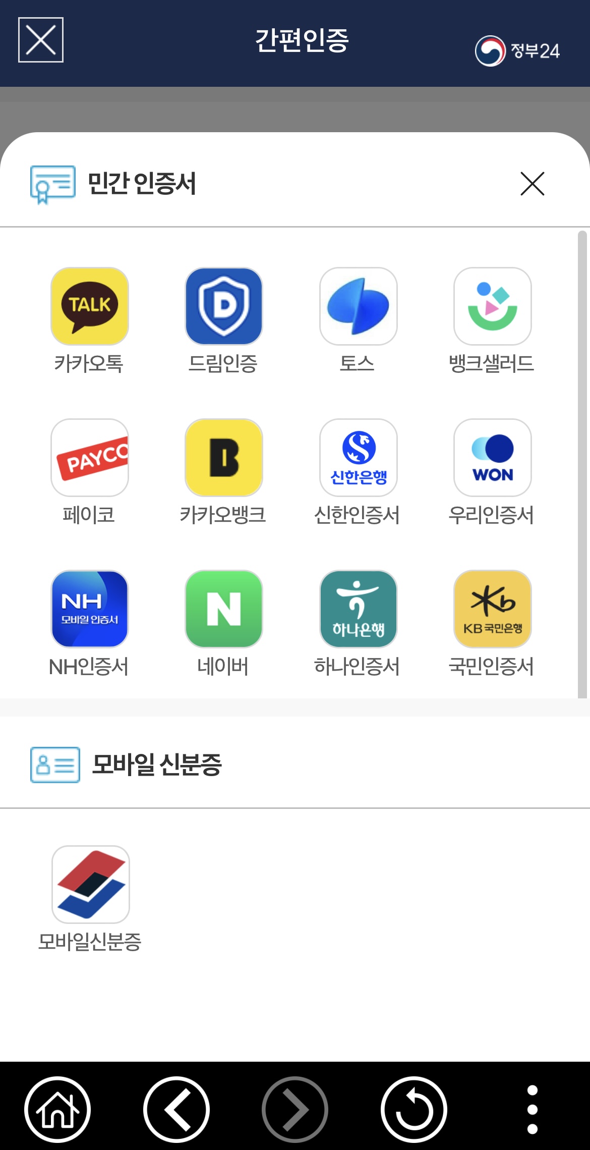 단 아이폰 이용자들은 정부24에서는 안될수도 있다고 하네요.