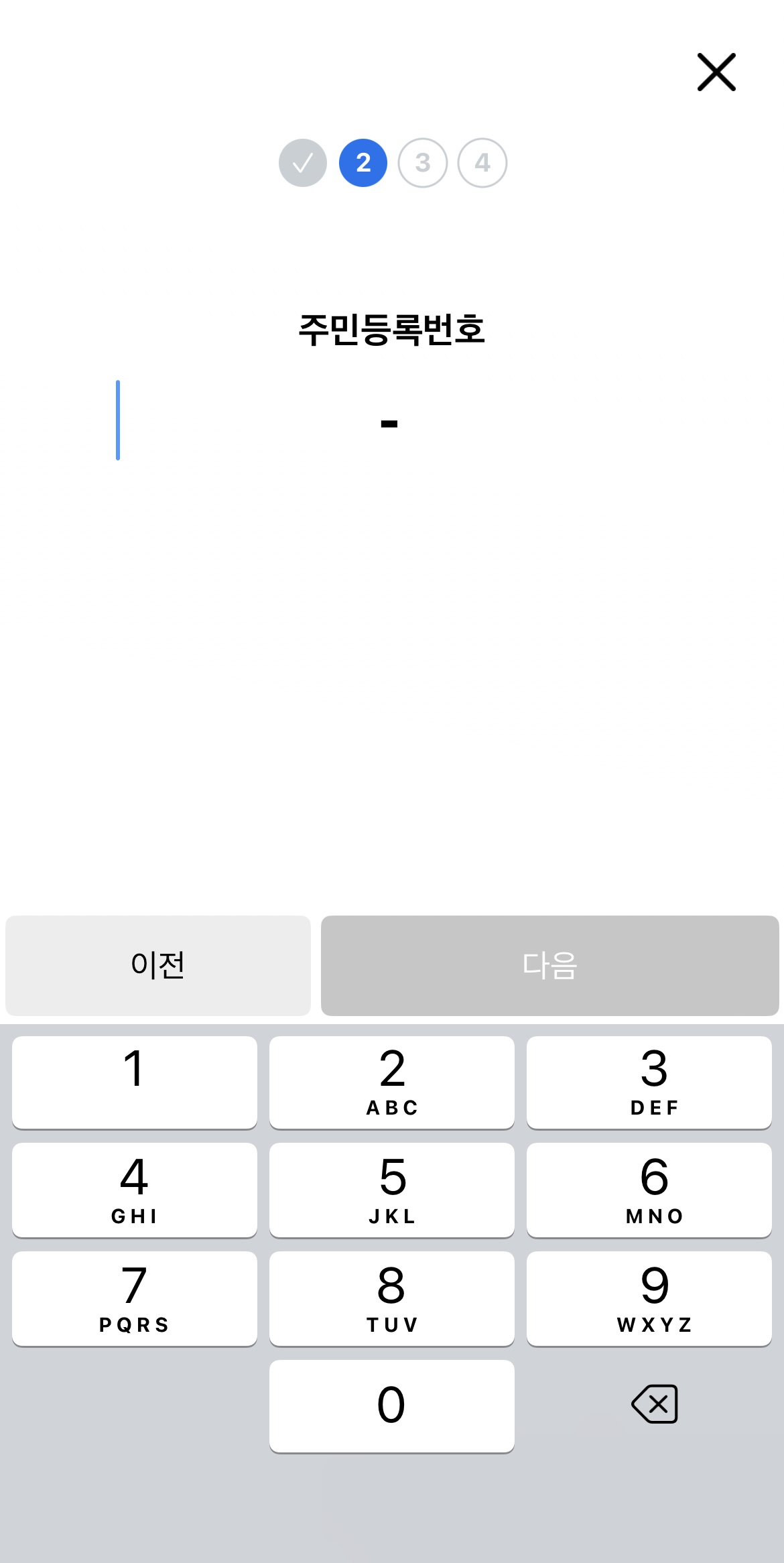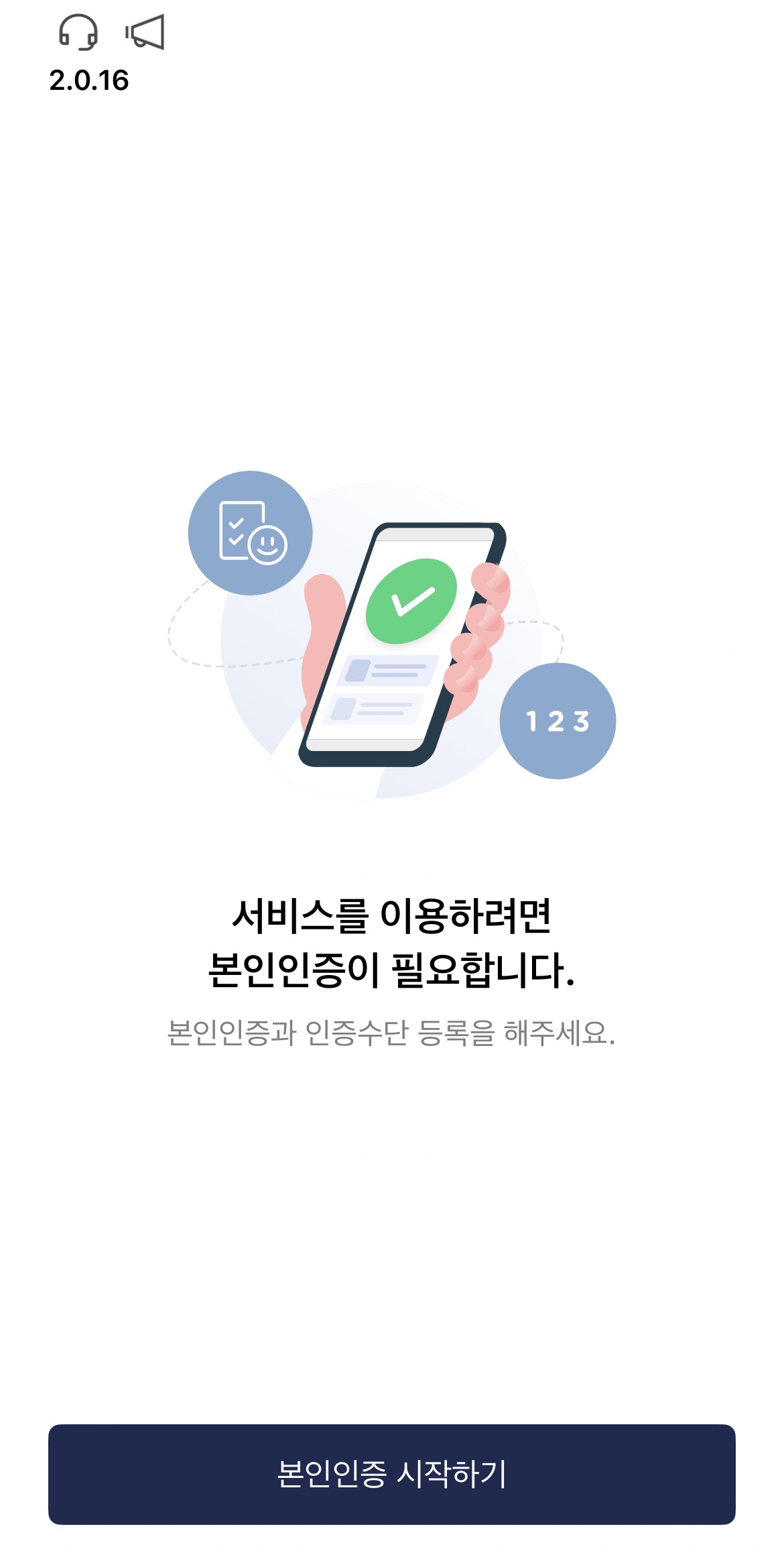 2. 어플리케이션을 시작하면 본인인증 절차를 진행합니다.
