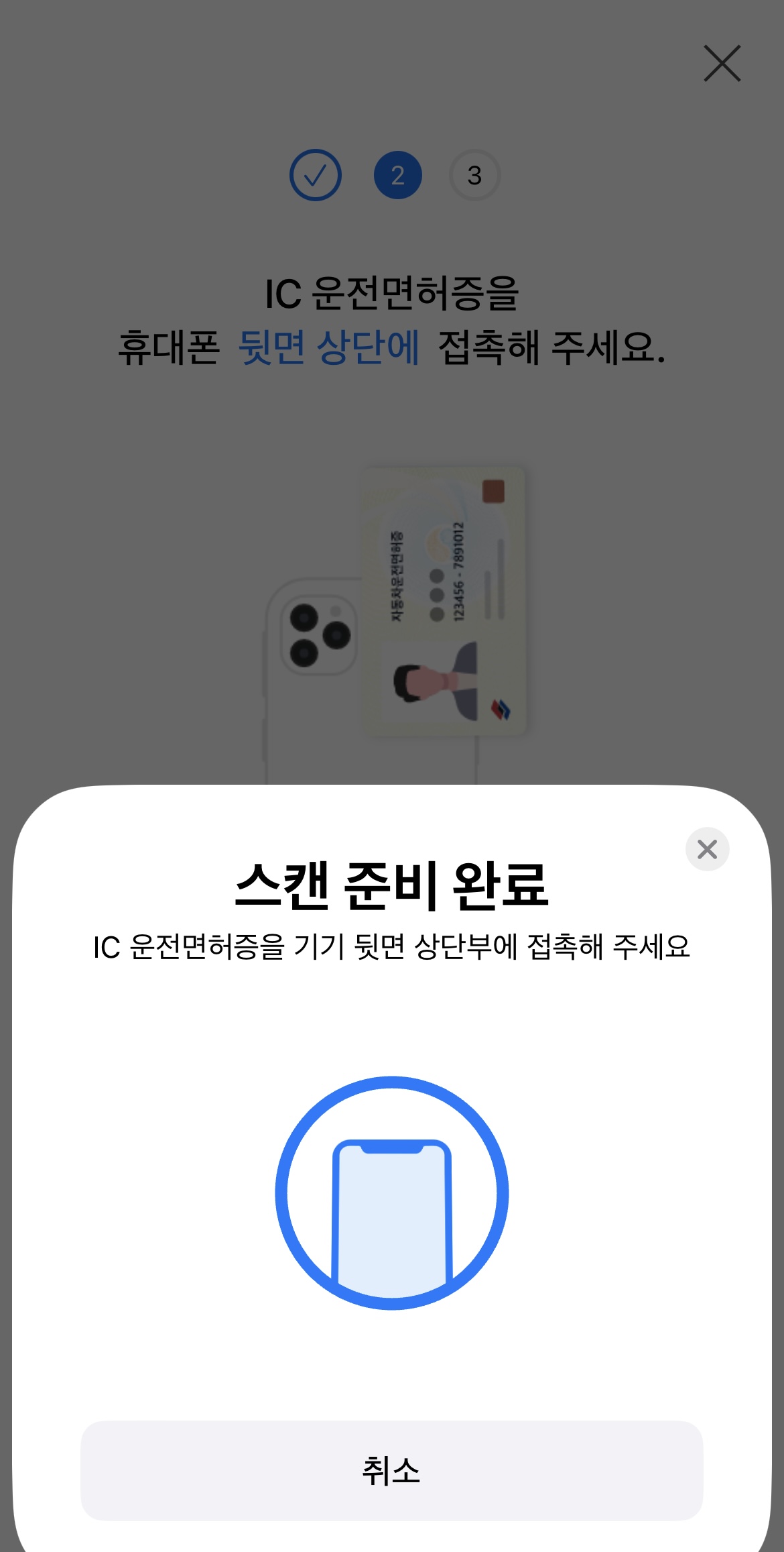 6. 휴대폰 뒷면 상단에 IC운전면허증을 태그하면 자동으로 인식됩니다.