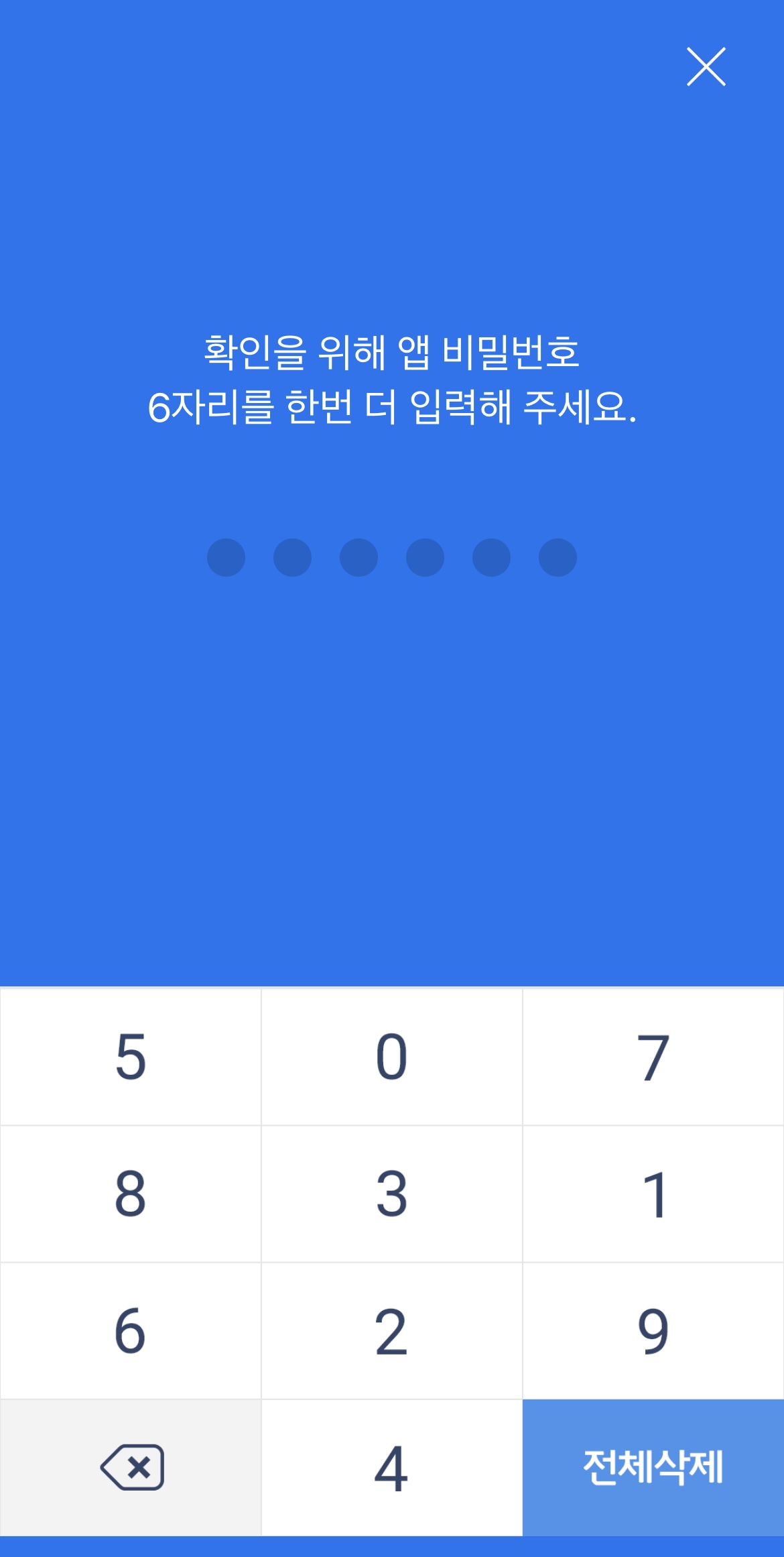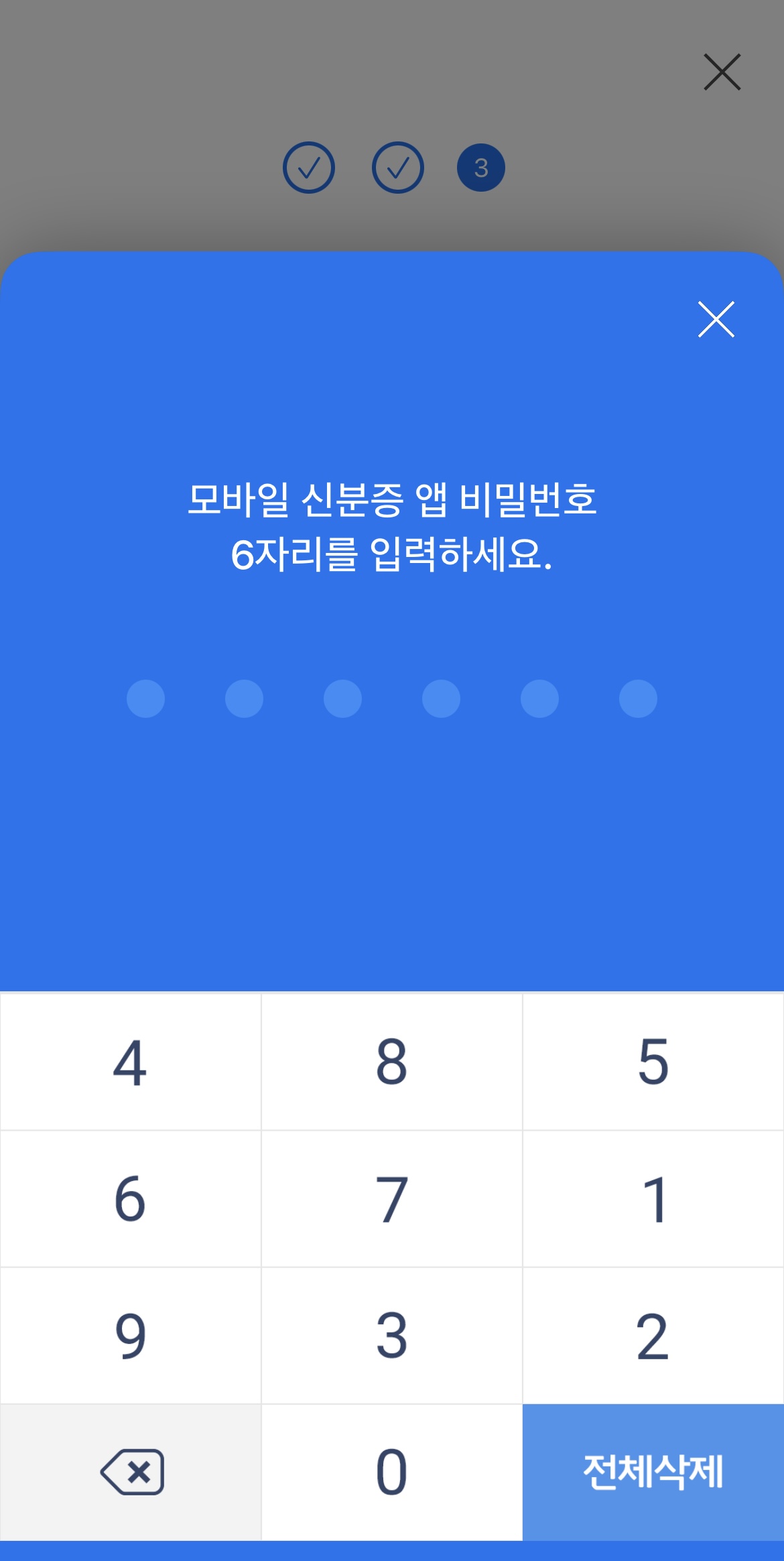 8. 얼굴 인증 절차가 끝나면 앞서 지정했던 모바일 신분증 앱의 여섯 자리 비밀번호를 입력하세요.
