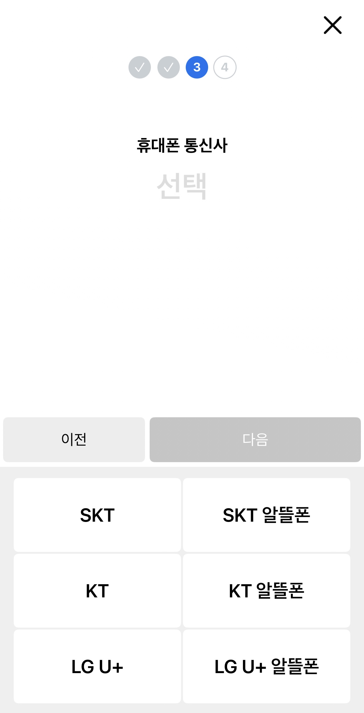 4. 성함, 생년월일, 핸드폰 통신사, 핸드폰 번호 순서대로 기입합니다.