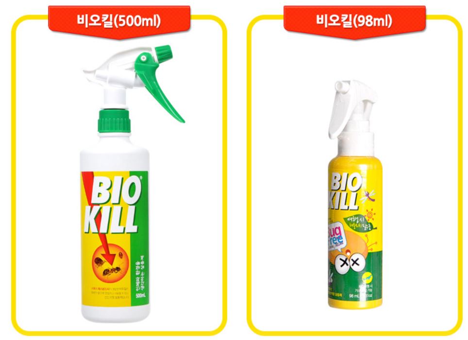 비오킬은 스위스 제스몬드사에서 개발한 살충제로 무색 무취의 제품입니다. 살충제 특유의 냄새가 없어 부담없이 사용하기 좋고 미국 환경보호청(EPA)의 허가를 받은 제품으로 저독성으로 안심하고 사용할 수 있다고 하네요.