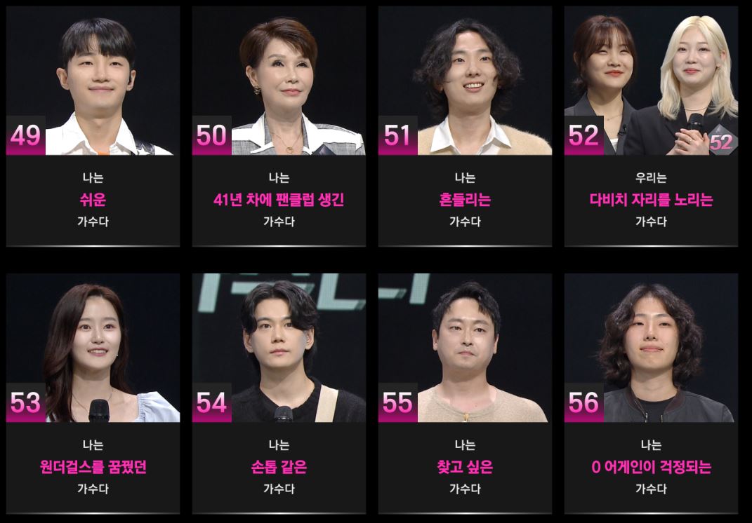 개인적으로 완전 무명가수 분들 중 이슈가 되는 실력자분이 나와 주시면 더 좋을 것 같아요.