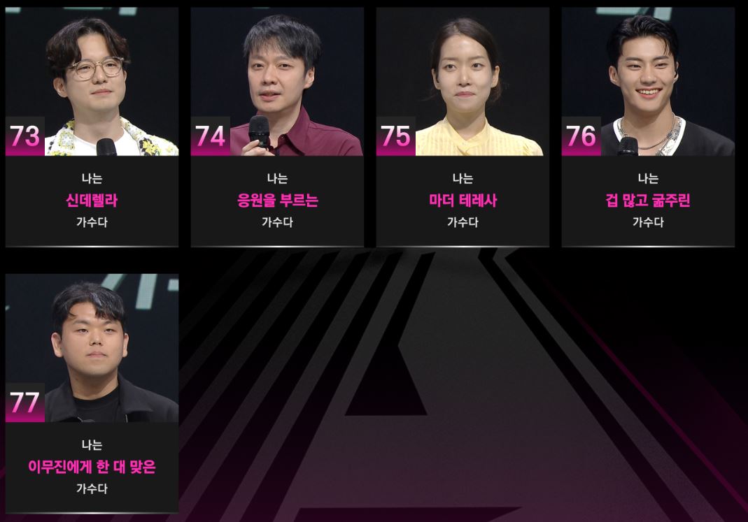 싱어게인3 출연자는 모두 77명입니다. 차암~ 실력자들 많아요~